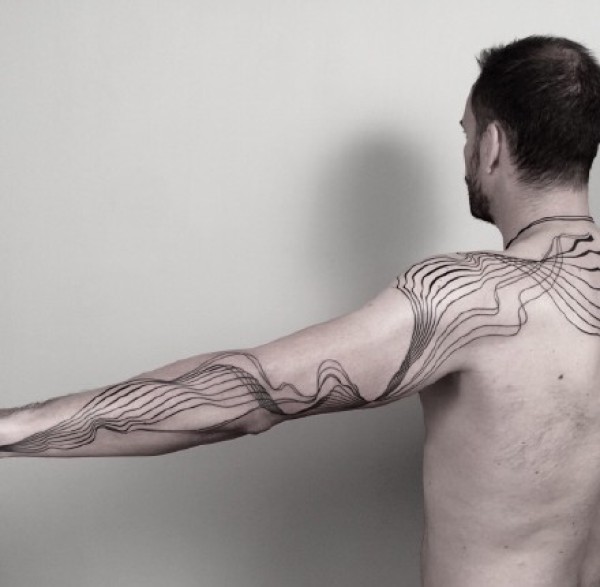 波浪线条组成的创意抽象纹身作品