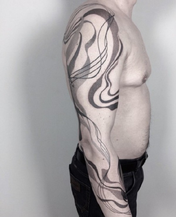 25款男性黑色手臂线条纹身点刺技巧半甲纹身图案