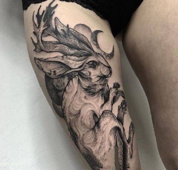 小兔子纹身:黑灰色的9张小兔子纹身作品9张