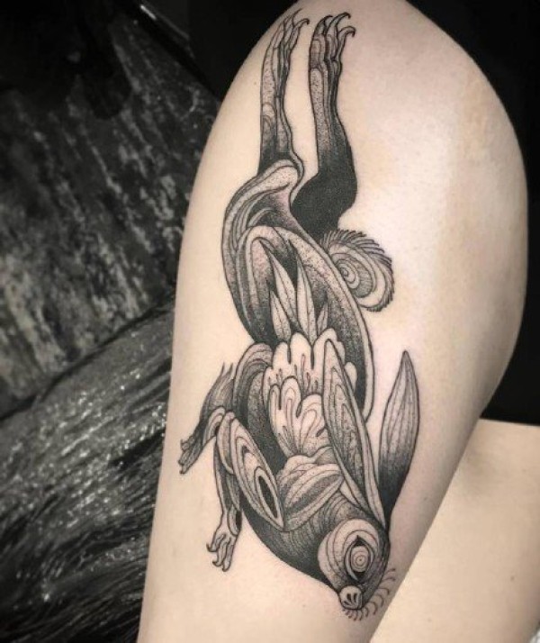 小兔子纹身:黑灰色的9张小兔子纹身作品9张