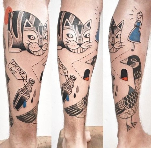 小清新涂鸦纹身:27张简约清新的小彩色涂鸦纹身图案