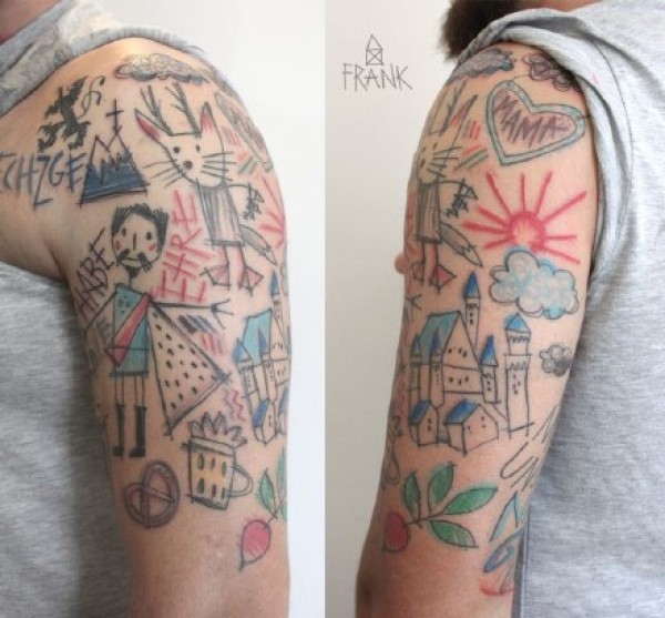小清新涂鸦纹身:27张简约清新的小彩色涂鸦纹身图案