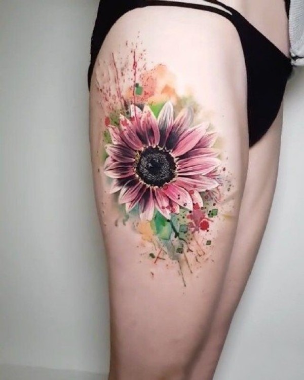 向日葵纹身图 10款彩绘纹身植物漂亮的向日葵纹身图案