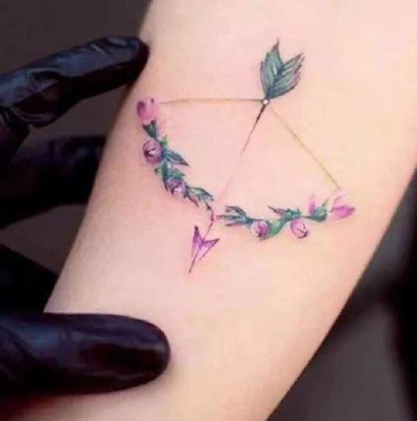 小清新的一组小彩色弓箭纹身图案作品