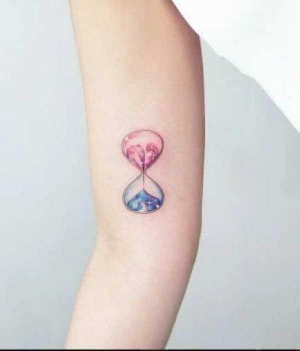 沙漏刺青+代表时间的小清新彩色沙漏纹身图案