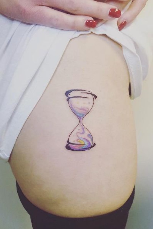 沙漏刺青+代表时间的小清新彩色沙漏纹身图案
