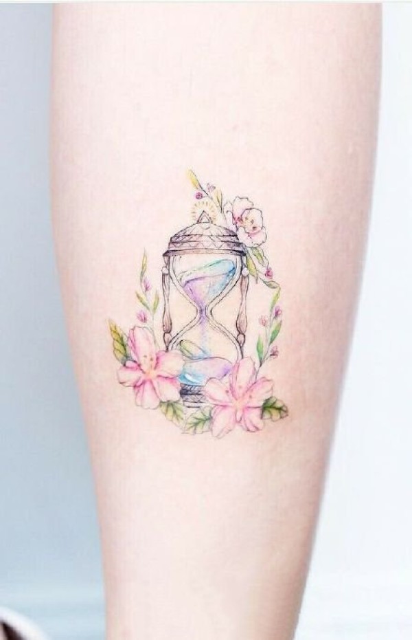 沙漏刺青+代表时间的小清新彩色沙漏纹身图案
