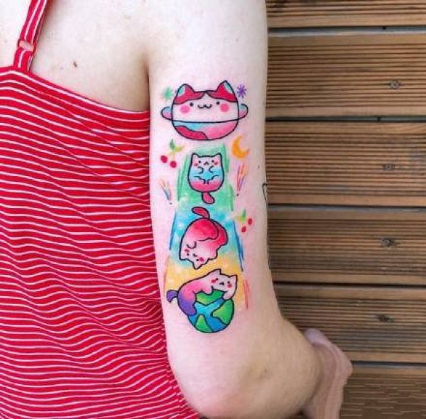 彩色的可爱卡通纹身小图美味的食物纹身图案