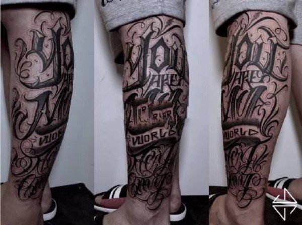 9张胳膊上很有个性的黑色英文花体字纹身图案