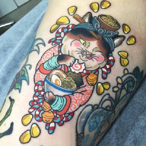 手背猫纹身:9张大花手背的猫纹身图案赏析