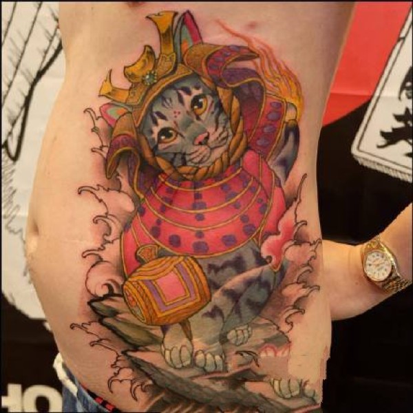 手背猫纹身:9张大花手背的猫纹身图案赏析