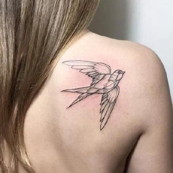 燕子刺青+简约又好看的黑灰燕子纹身图案欣赏