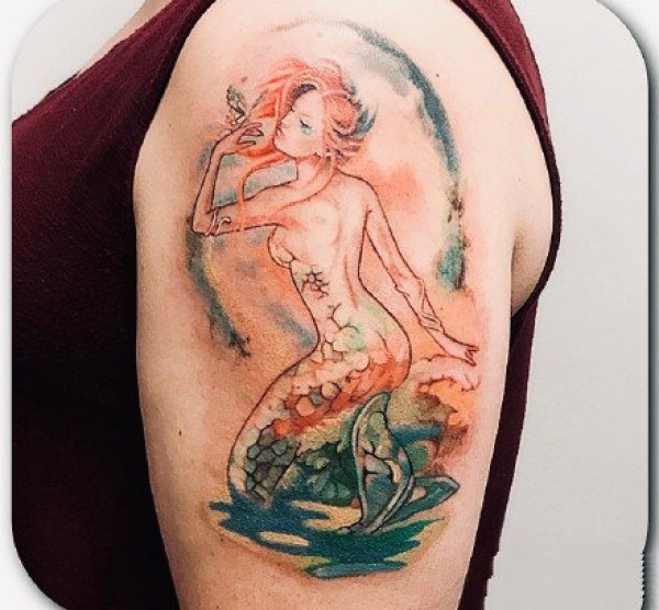 美人鱼纹身图案-彩绘水彩素描创意文艺唯美美人鱼纹身图案