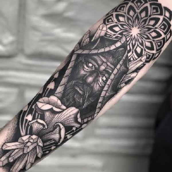 点刺作品:16张优秀的黑灰点刺纹身作品图案