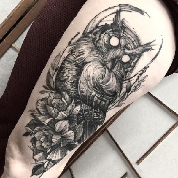 点刺作品:16张优秀的黑灰点刺纹身作品图案