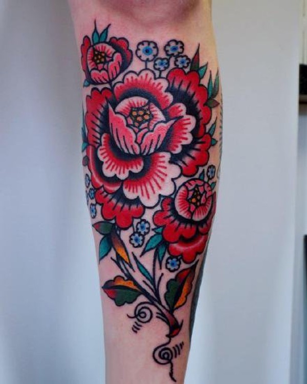 牡丹花:复古oldschool风格的牡丹花纹身图案9张
