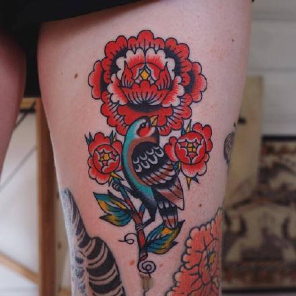 牡丹花:复古oldschool风格的牡丹花纹身图案9张