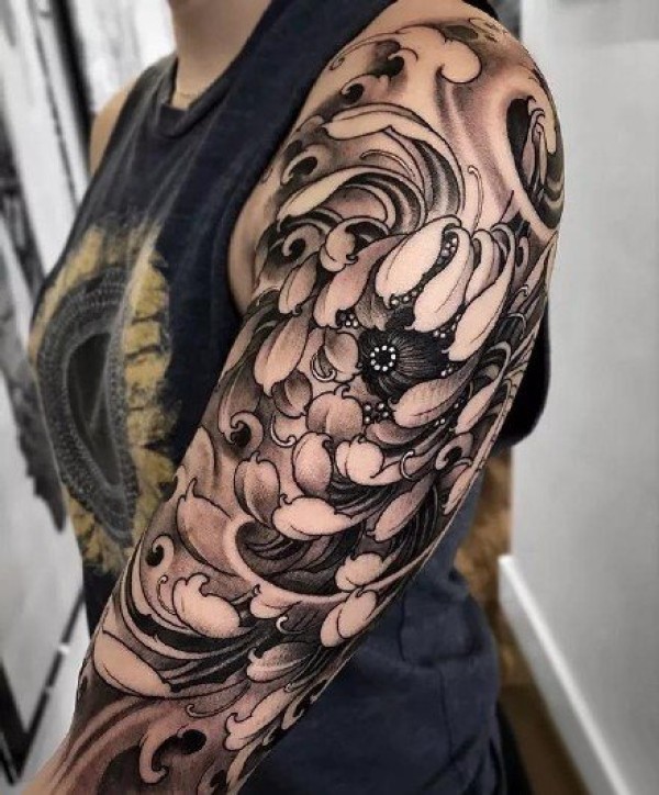 黑灰菊花:手臂和腿部上好看的黑灰菊花纹身图案