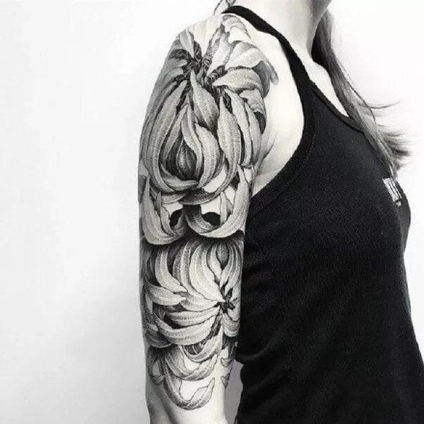 黑灰菊花:手臂和腿部上好看的黑灰菊花纹身图案
