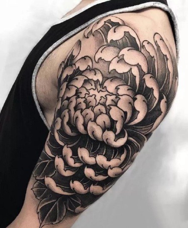 黑灰菊花:手臂和腿部上好看的黑灰菊花纹身图案