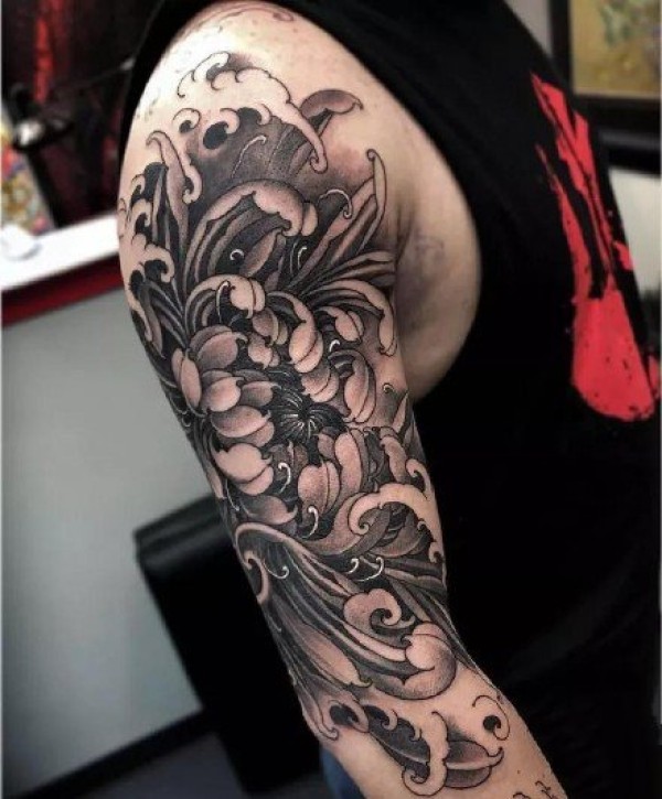 黑灰菊花:手臂和腿部上好看的黑灰菊花纹身图案
