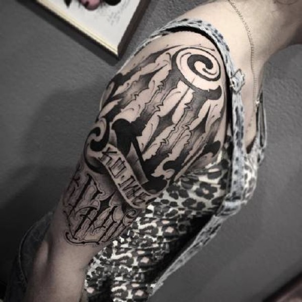 9张胳膊上很有个性的黑色英文花体字纹身图案