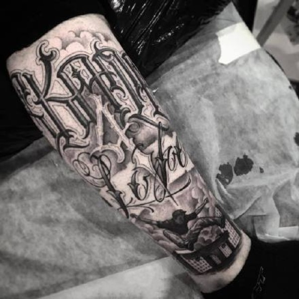 小臂花体英文纹身 设计感十足的花体英文纹身图案