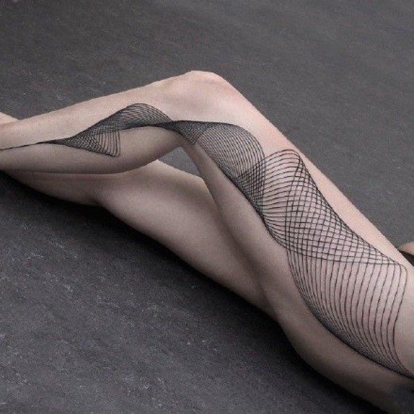 女生后腰纹身黑白灰风格抽象线条纹身图案