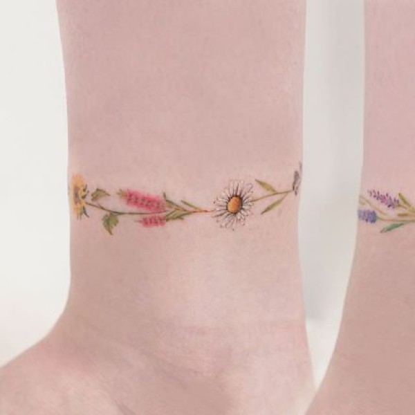 适合女生纹在脚踝处的小清新纹身图片
