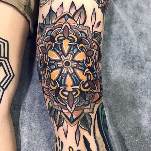 oldschool曼陀罗:复古school风格的曼陀罗梵花纹身图案