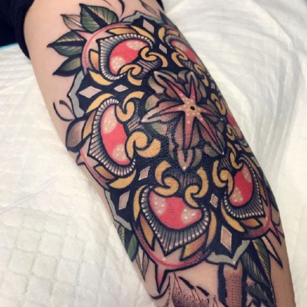 oldschool曼陀罗:复古school风格的曼陀罗梵花纹身图案