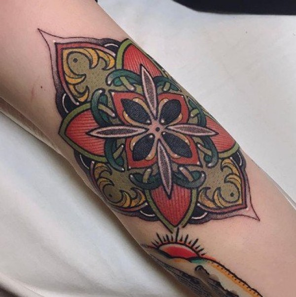 oldschool曼陀罗:复古school风格的曼陀罗梵花纹身图案