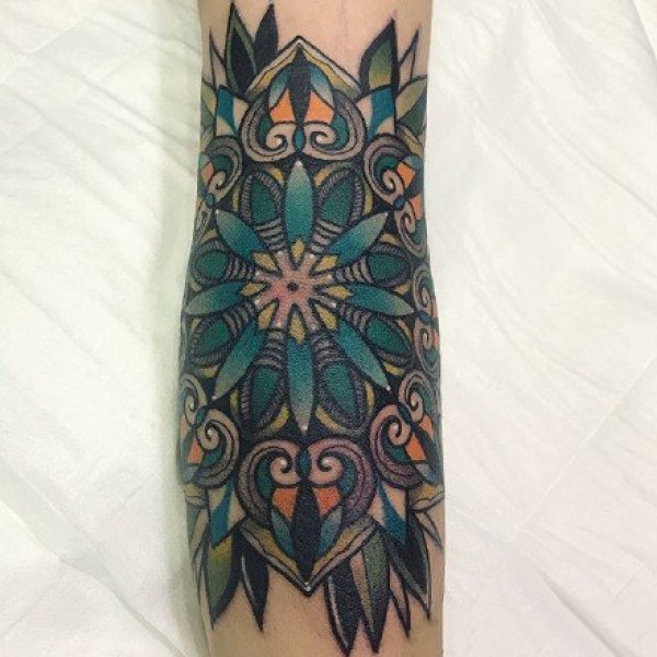 oldschool曼陀罗:复古school风格的曼陀罗梵花纹身图案