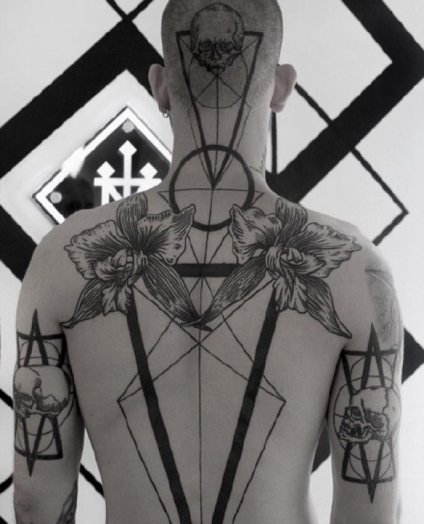 黑白纹身图案大全 多款黑白纹身骷髅图案和个性几何纹身图案