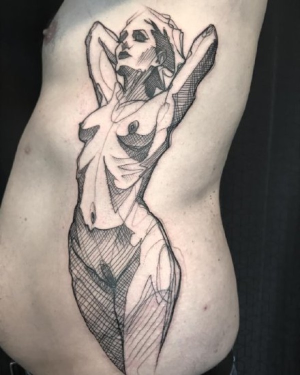 裸女郎+纹在身上的一组裸体女郎纹身图案