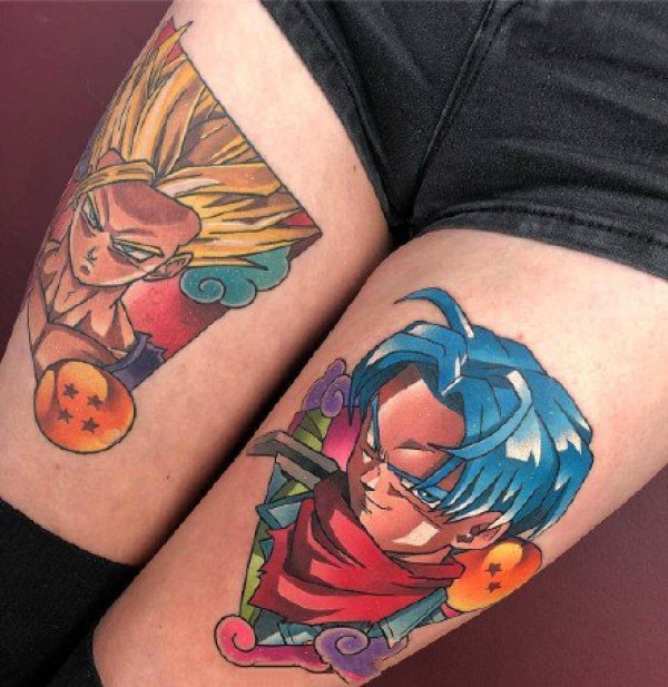 七龙珠刺青:彩色的一组动漫七龙珠角色纹身图案