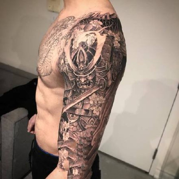武士花臂:日式风格的一组传统武士等花臂纹身图案