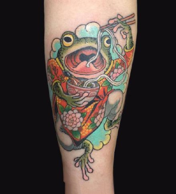 日式风格的传统花腿纹身作品欣赏