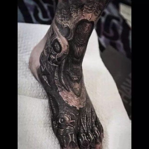 让人感觉无比有力的男性生物机械花臂纹身图案