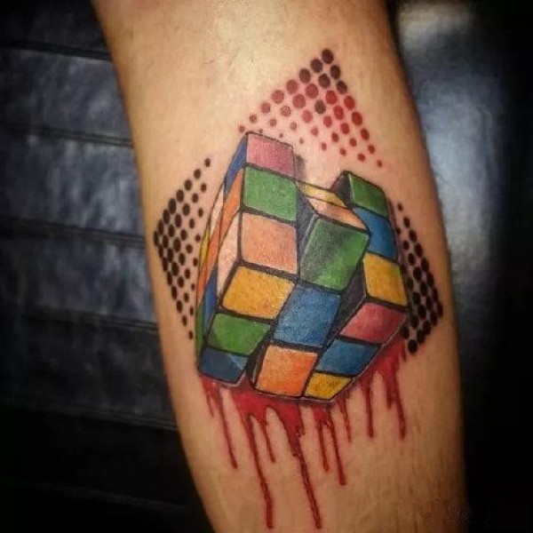 魔方纹身图案 男生手臂上黑色的魔方纹身图片