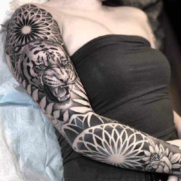 个性狂野美女霸气花臂纹身_手臂纹身图案大全_纹身图吧