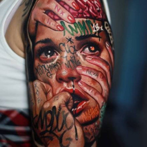 逼真的超现实主义花纹身图案来自纹身师莫拉莱斯