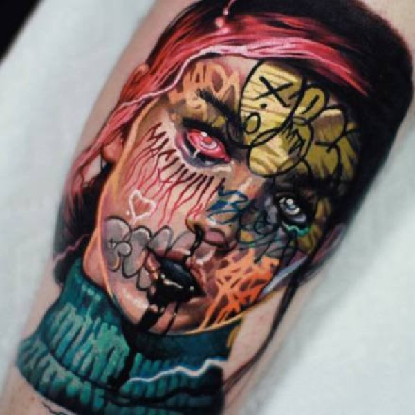 逼真的超现实主义花纹身图案来自纹身师莫拉莱斯