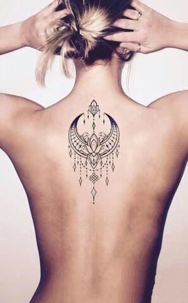 女生后腰纹身黑白灰风格抽象线条纹身图案