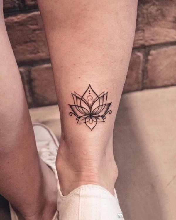 黑灰莲花:适合女生的一组莲花线条纹身图案