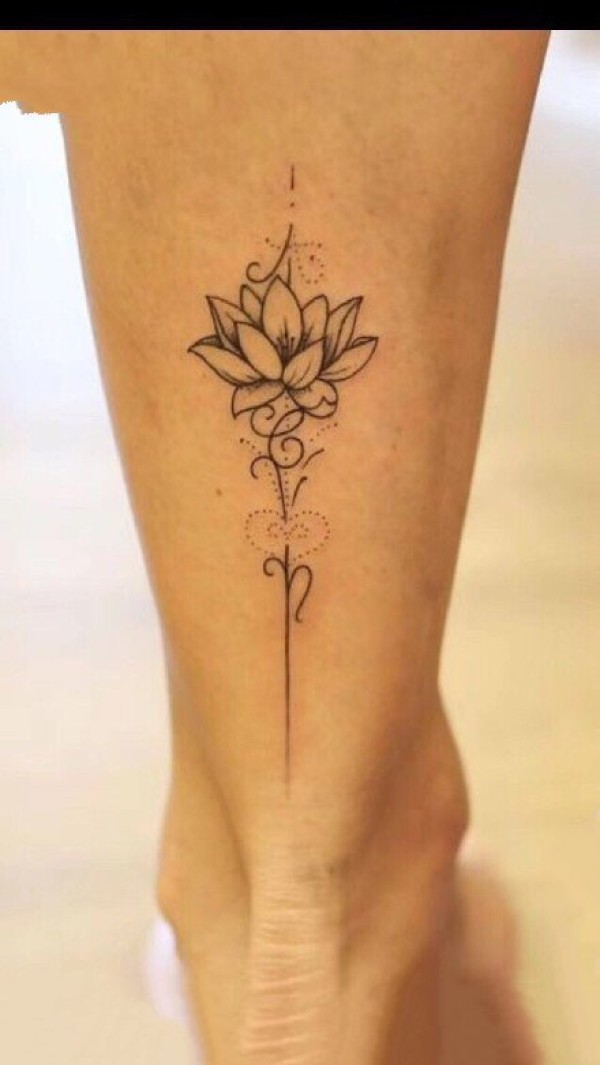 黑灰莲花:适合女生的一组莲花线条纹身图案