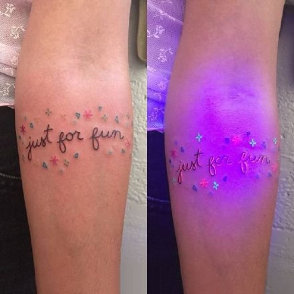 夜晚很漂亮的纹身图案搭配荧光纹身效果图欣赏
