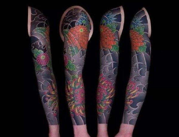 欧美花臂纹身_22张霸气黑灰欧美大黑花臂纹身图案作品图片