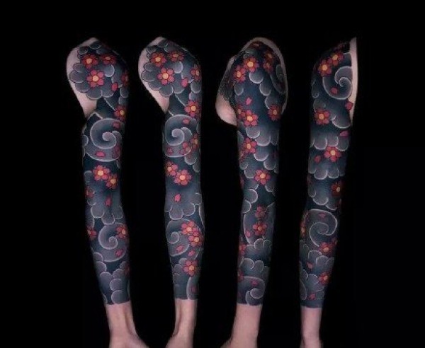 欧美花臂纹身_22张霸气黑灰欧美大黑花臂纹身图案作品图片