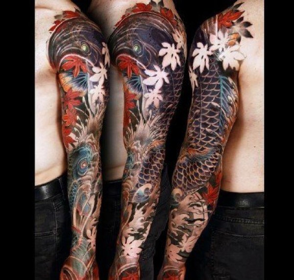 传统风格的一组男性花臂和花腿纹身图案欣赏
